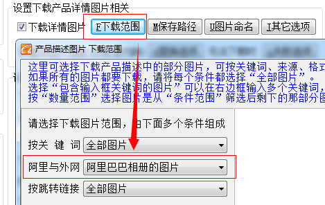 ◆拍拍网店目前不支持淘宝、1688的图片外链,所以请打开下载产品描述图片,“下载范围”里面至少需要选择下载阿里的图片(软件默认选项),将这部分图片搬家到拍拍相册才能正常显示,当然您也可以使用其它网络相册或者个人网站(域名空间)。