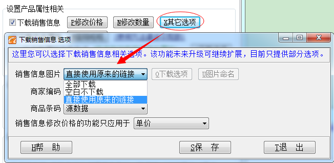 销售属性图片下载到本地,目前只有淘宝助理支持这一类图片的自动上传,拍拍助理和1688商机助理都无法上传。上传之后图片会丢失,默认只能选择“直接使用原来的链接”。