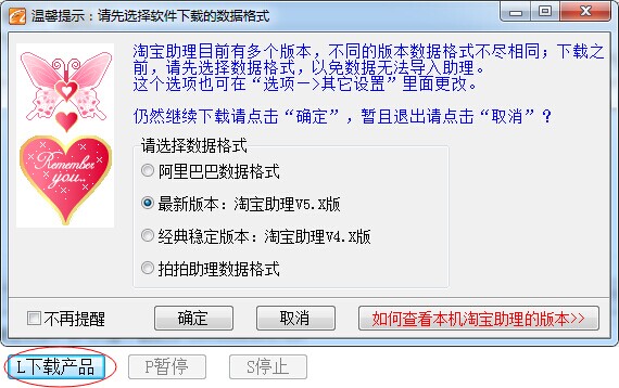 如果您使用的是“1688数据包制作软件”,软件默认下载的是“1688的数据格式”,点击“下载产品”时会跳出选择数据格式的窗口