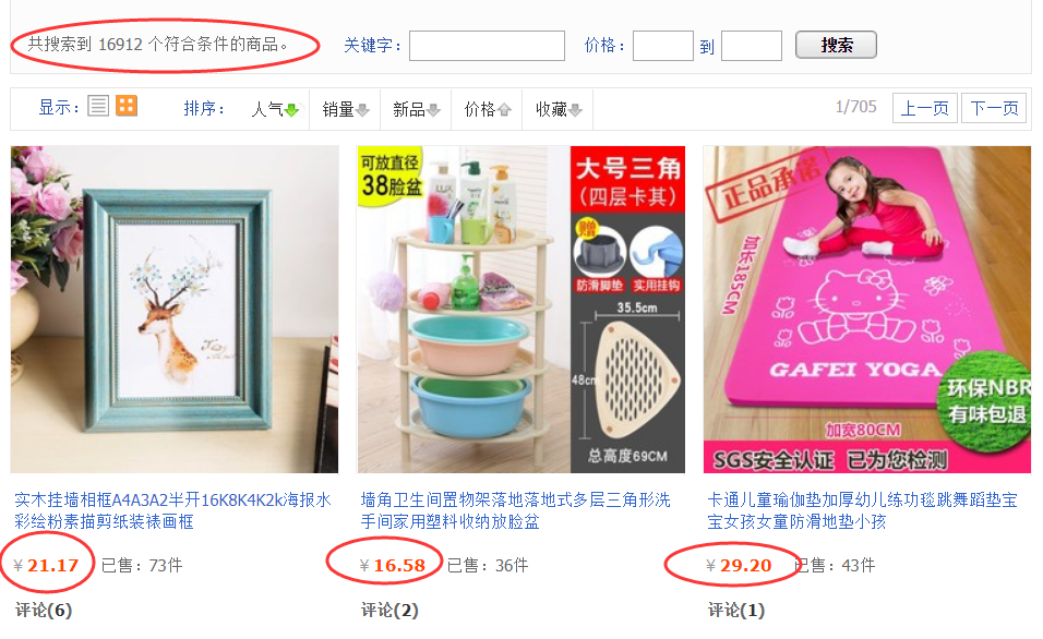 ▼要下载的店铺宝贝,价格必须多样化,不能多数都是相同价格,不能对人气、销量、新品排序有要求,比如下面的店铺,有一万多宝贝;