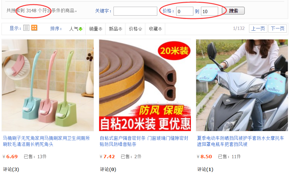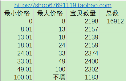 比如说价格0到10有3000多宝贝