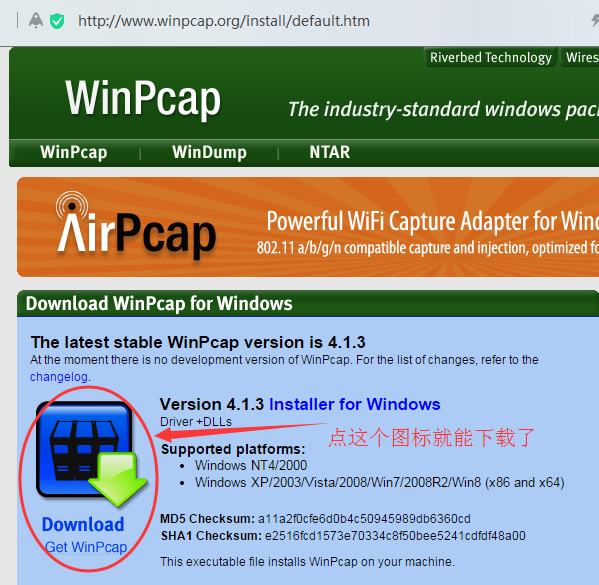 WinPcap驱动官方下载地址: http://www.winpcap.org/install/default.htm
