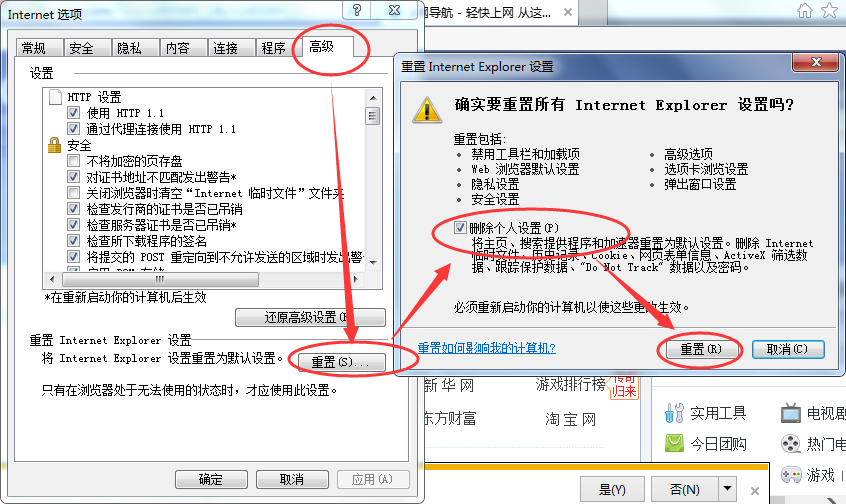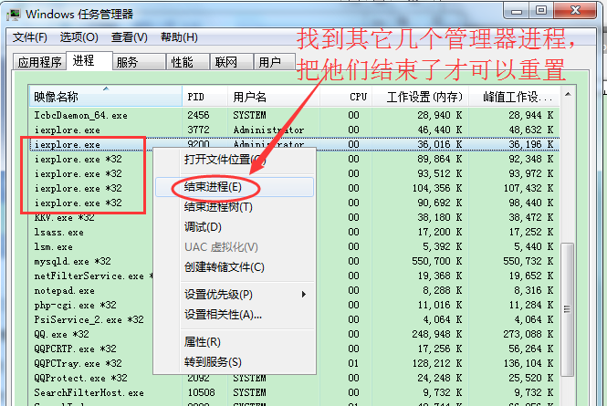需要先把其它浏览器关了才能重置