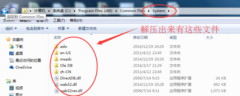 Win10点击下载System10.rar解压包,Win7点击下载System7.rar解压包,里面包含了数据库驱动的全部文件,64位系统请解压到C:\Program Files (x86)\Common Files这个目录下;32位系统请解压到C:\Program Files\Common Files就可以了;