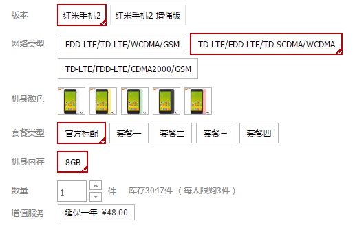请看下面手机类目的宝贝,“网络类型”是一个销售属性: