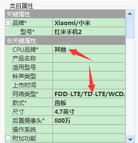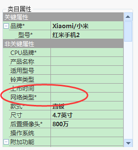 再导入淘宝助理可以看到必填属性都填写完整,“网络类型”自动选择了原来销售属性里面的第一个: