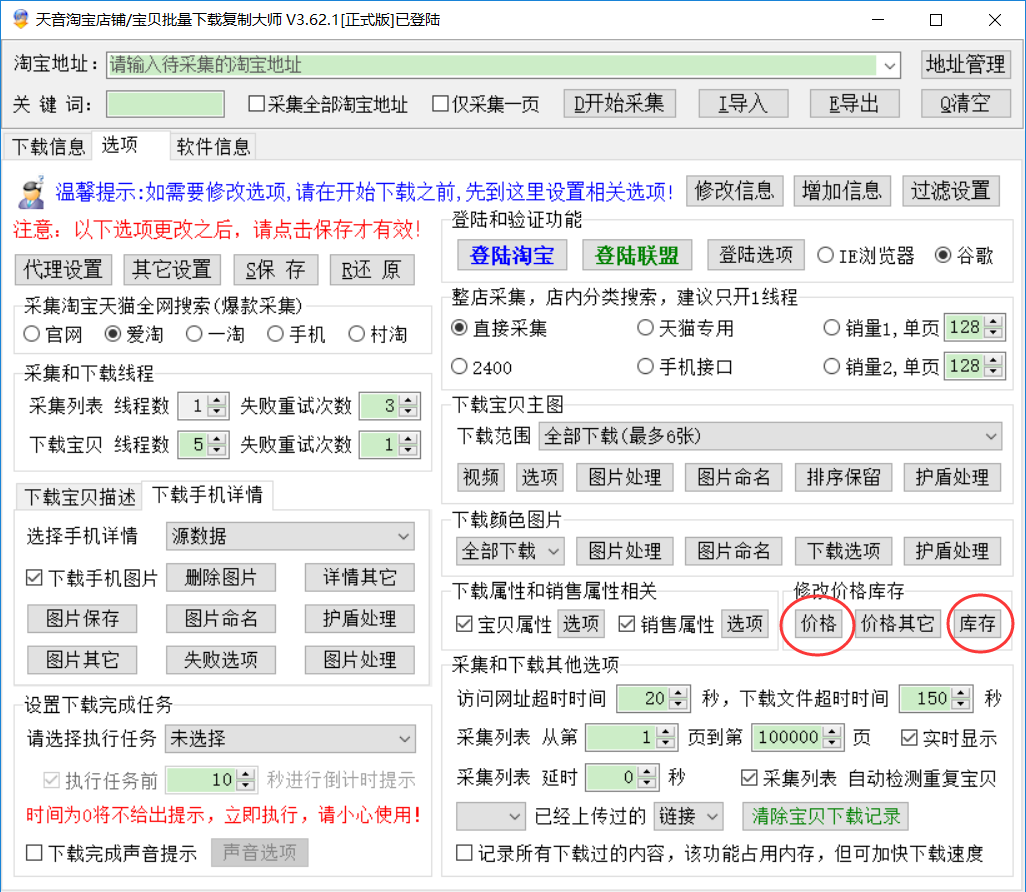 全部宝贝:下载的数据全部会按设定的规则更改;