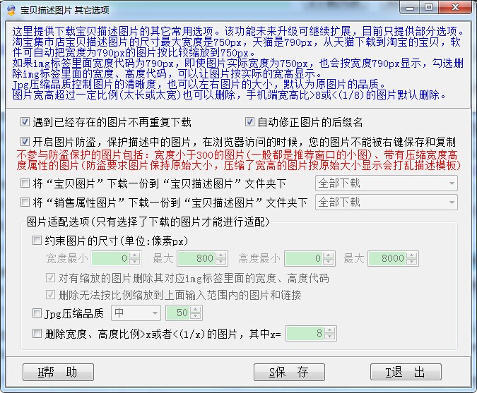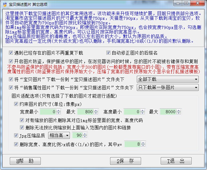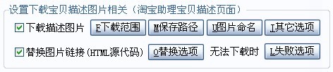 这里提供下载宝贝描述图片的其它常用选项。该功能未来升级可继续扩展,目前只提供部分选项。