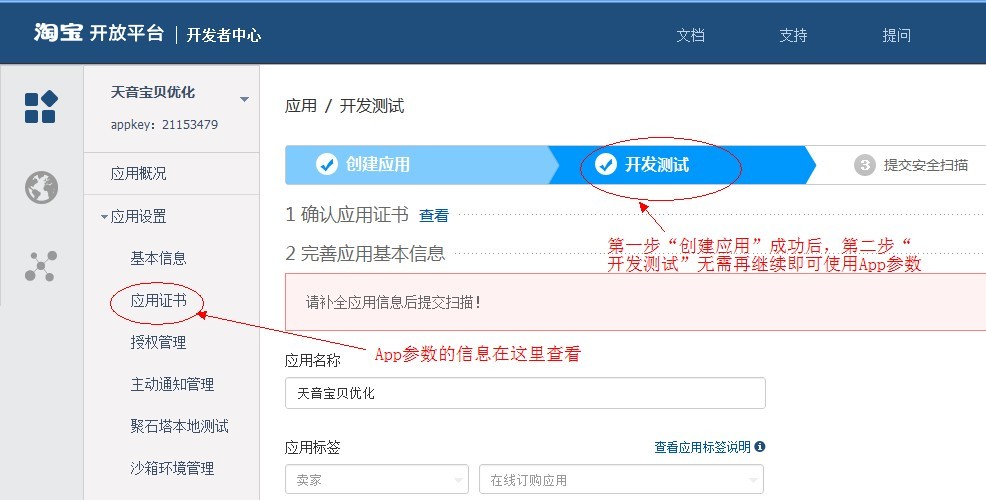 重要提醒:在申请之前先确认您淘宝帐号是通过实名认证的,一般的淘宝帐号是无法申请正式环境使用的。