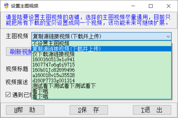 使用该功能可以直接复制上家的视频,下载视频到本地,也可以选择店铺已有的视频。