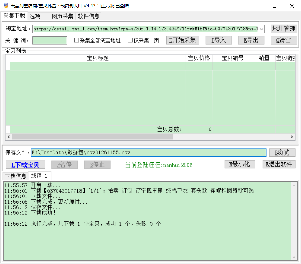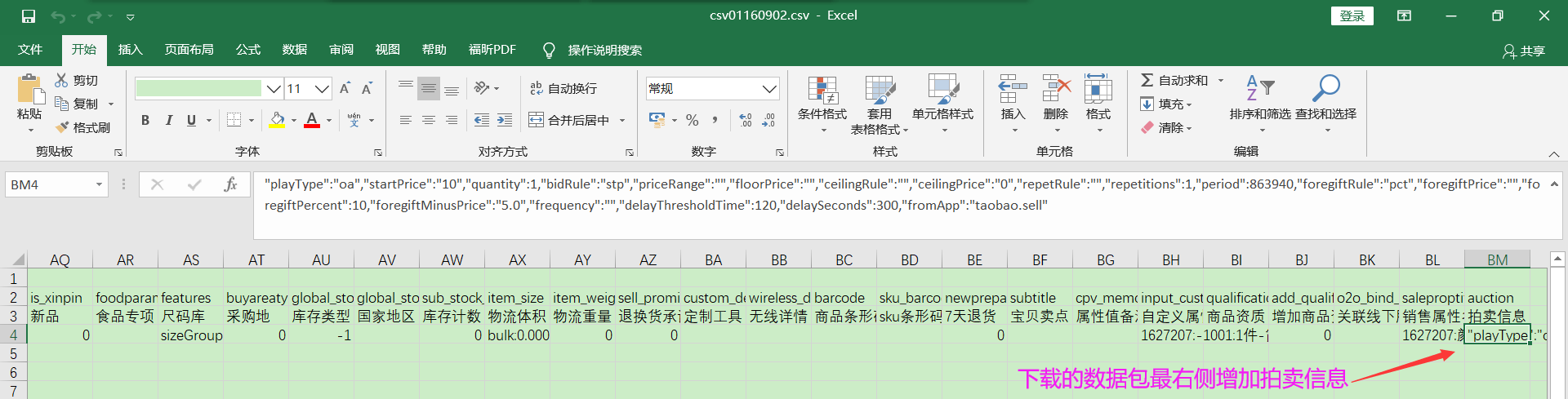 下载出来的拍卖CSV可以导入数据包工具上传到淘宝店铺,详细请看★数据包上传 上传拍卖宝贝★