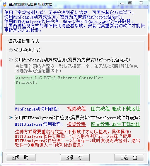 1、“使用HTTPAnalyzer软件检测”默认是不可选择的,原因在于使用这种方式需要预先安装HTTPAnalyzer软件,请点击下载、安装、破解和卸载HTTPAnalyzer软件,安装完毕请重新打开软件即可选择;