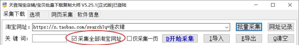 第一步:勾选采集全部淘宝网址
