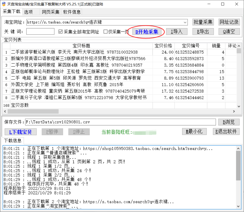 简要方法:勾选采集全部淘宝网址“添加网址”—>点击“批量采集”“添加网址”—>点击“开始采集”