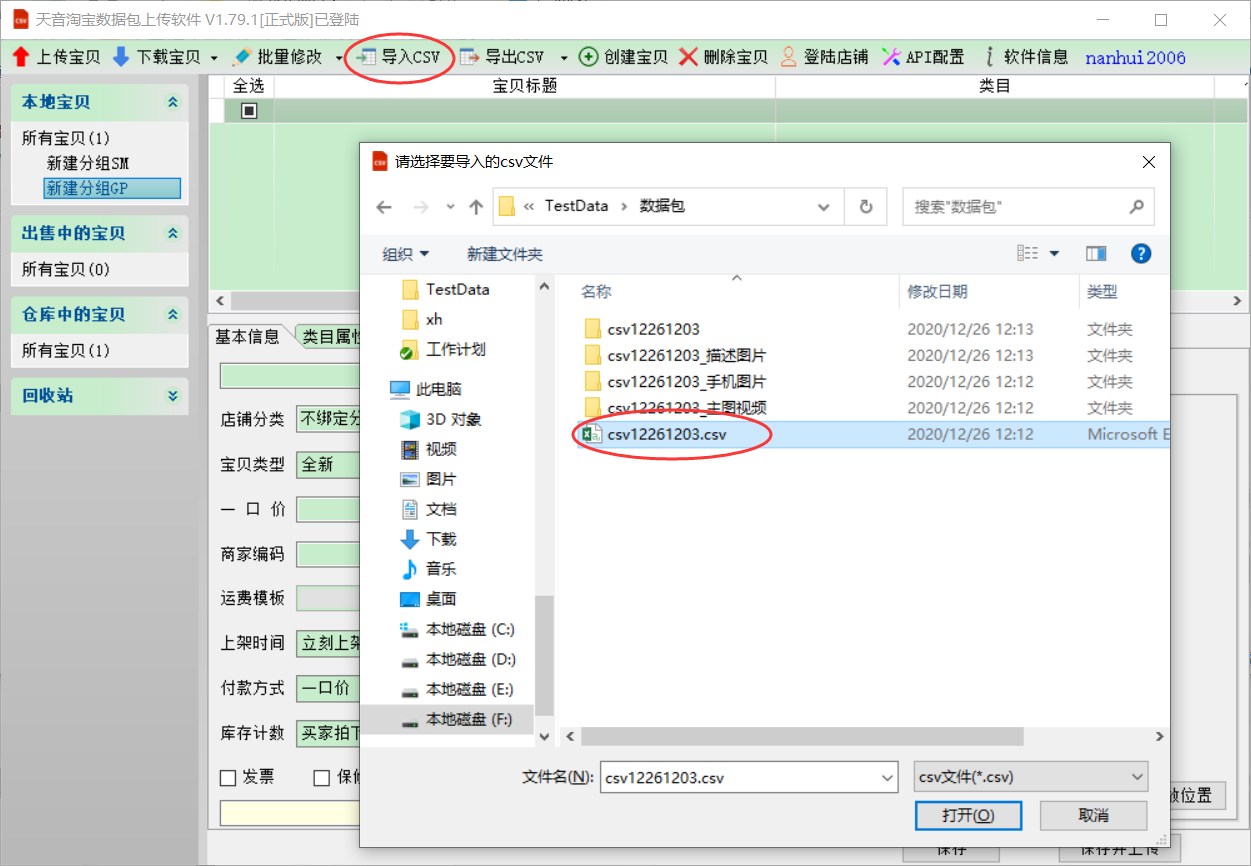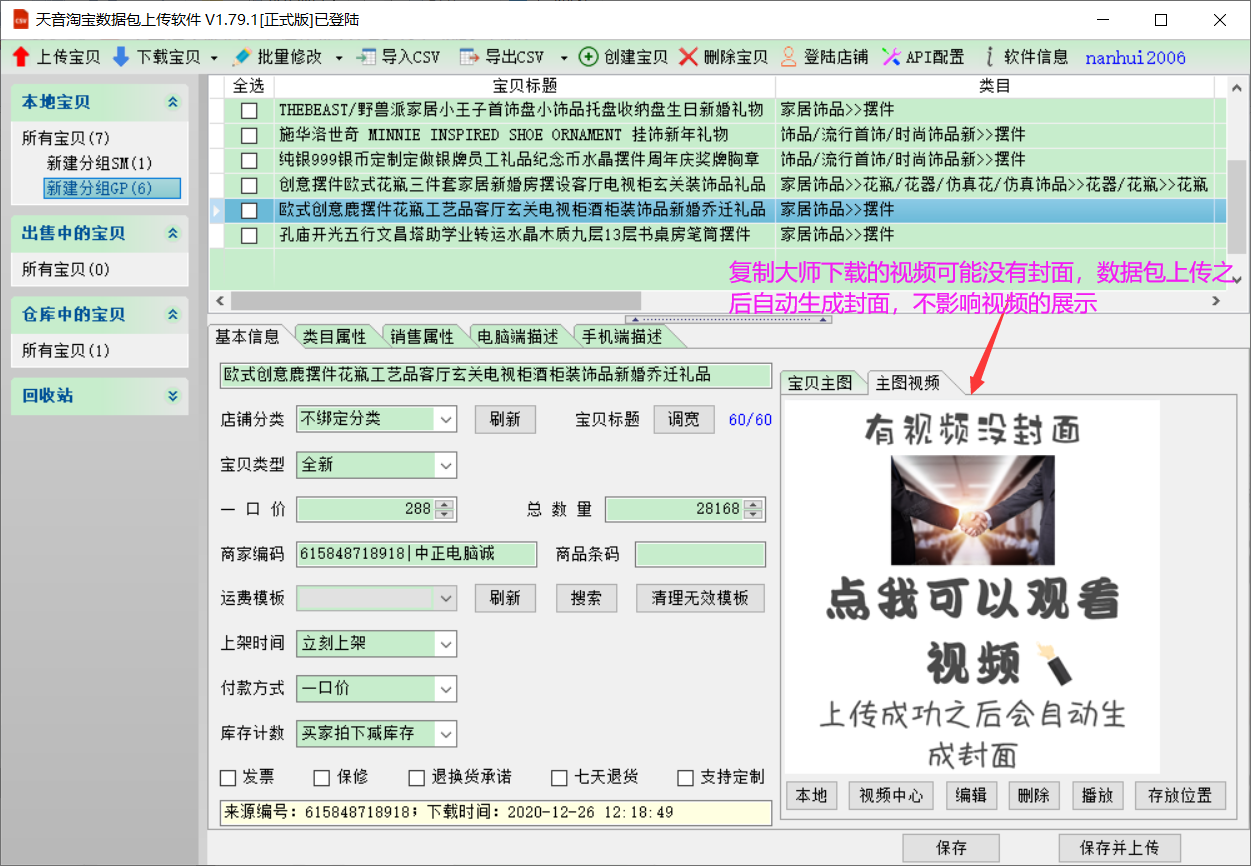 ▼导入带有本地主图视频的数据包(从淘宝数据包制作下载