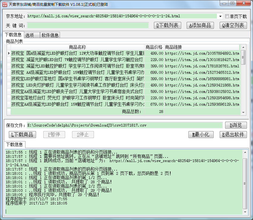 京东店铺/商品批量复制下载软件