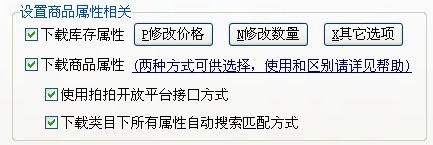 ②下载类目下所有属性自动搜索匹配方式:V2.27以前的版本保留下来的,首先下载当前商品所属类目下的所有属性,有了详细属性的数据库,当前商品的每个属性值可通过自动搜索匹配的方式获得,所有属性值组合在一起成为最终的结果。目前这种方式准确率接近100%;缺点是:下载商品详细信息之前需要先下载类目下所有的属性,下载速度较第①种方式慢,效率较低。之所以目前还保留这种方式,是因为第①种方式拍拍限制比较多,目前不是很稳定,作为后备使用。