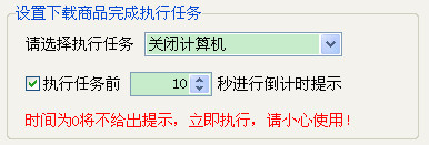 可以设置下载完成后自动关机、重启、待机或注销等功能,并可在执行任务前N秒进行倒计时提示。