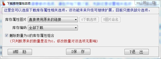 这里您可以选择下载库存属性相关选项。该功能未来升级可继续扩展,目前只提供部分选项。