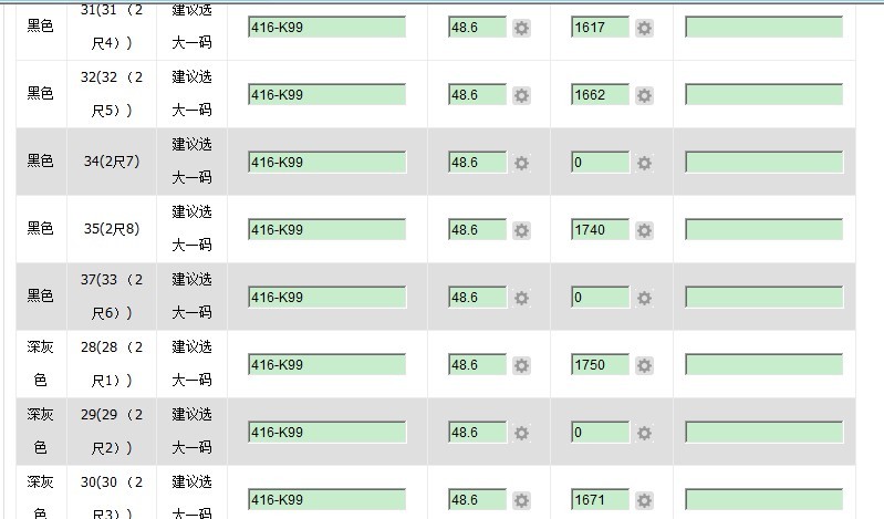 勾选该项之后,库存属性里面数量为0的组合的内容将会被删除,但是该行仍然存在,需要将价格、数量等内容补充完整才可以上传,否则上传会报“库存属性不完整”的错误