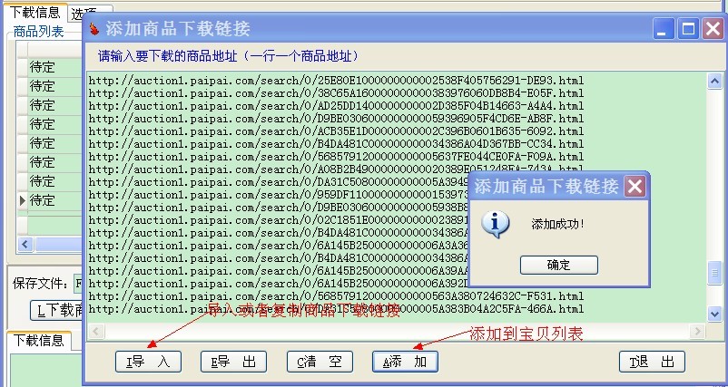 如果您有一批商品链接想要下载数据,可以复制或者导入,添加到商品列表再下载。这个功能也可以在下面这一步“下载商品”过程中暂停再添加,可以补充在前面一步“下载列表”时遗漏的数据。