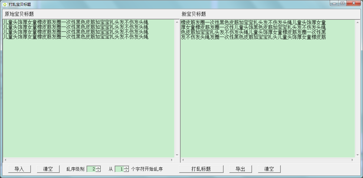这个程序可以导入标题,并把标题一一打乱输出,可设定打乱级别和开始打乱位置。