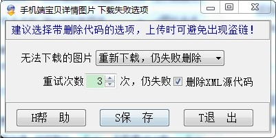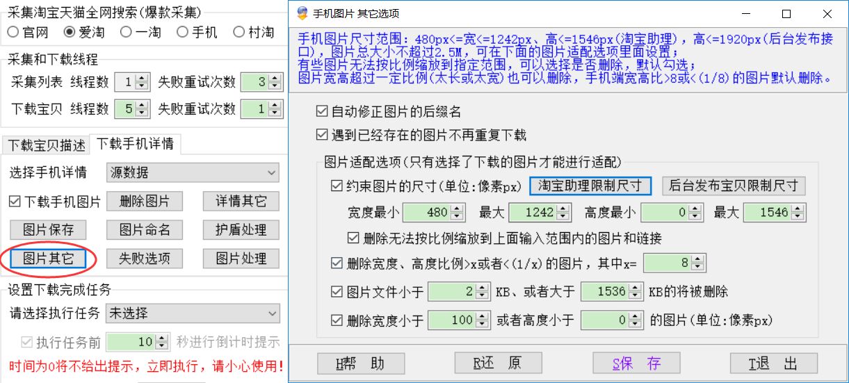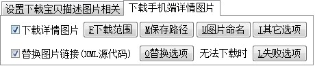设置下载手机端详情图片相关(淘宝助理手机端宝贝详情页面),软件默认打开该功能,需要“下载详情图片”请按下图示例勾选该功能: