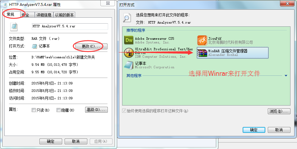 要是安装了Winrar还是像上面图片一样,可以在文件上面点右键—>属性—>打开方式—>更改,选择用Winrar软件来打开,这样全部图标就变回来了。