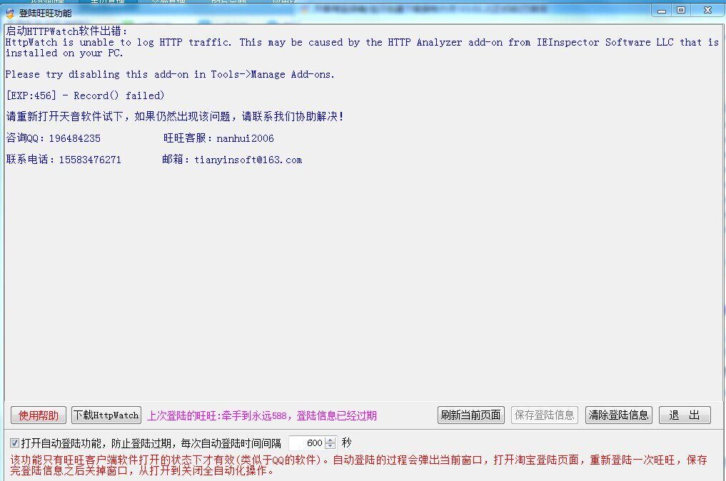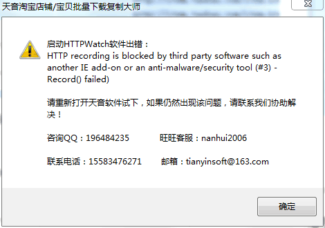 翻译:这个是说跟其它类似于HttpWatch的插件(比如说我们天音旧版本用到的HttpAnalyzer软件)互相冲突,或者是跟电脑里面的杀毒软件某个功能互相冲突,导致HttpWatch软件无法安装或者启用。