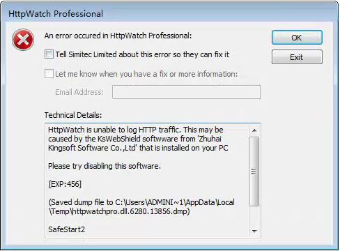 ◆HttpWatch is unable to log HTTP traffic.This may be caused by the KsWebShield software from 'Zhuhai Kingsoft Software Co.Ltd' that is installed on your PC