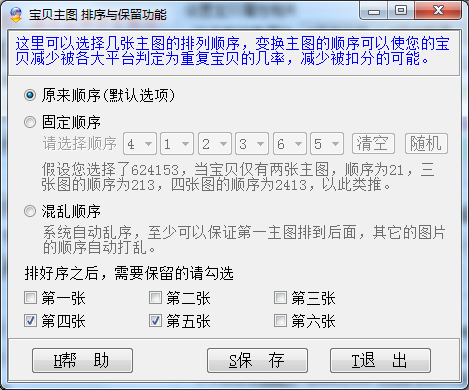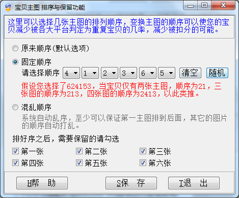 固定顺序:可以选择几张主图固定的顺序,这个顺序可以随机抽选,也可以根据需要选择顺序,选择之前请先清空再选。