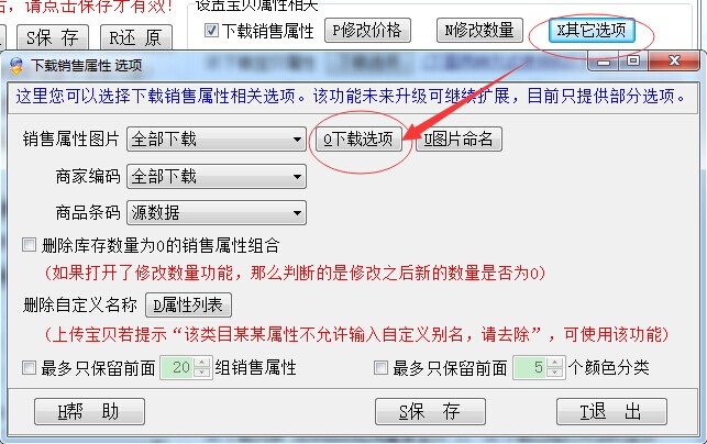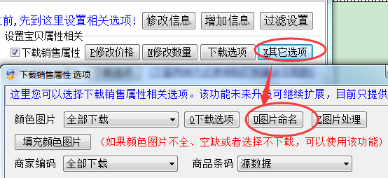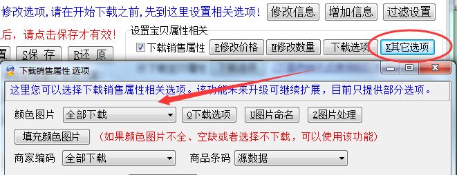 设置下载颜色图片相关(淘宝助理销售属性页面):
