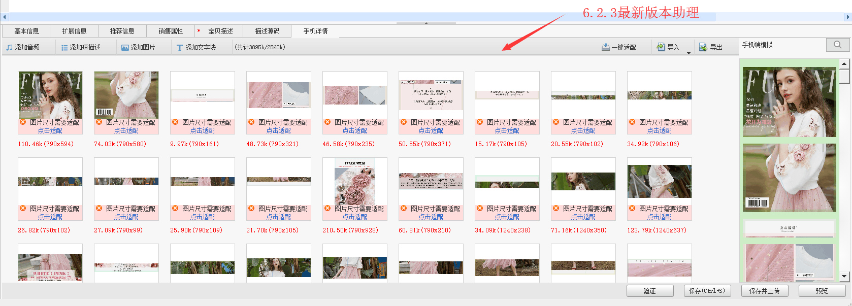 同样的切图数据包,用最新6.23版本的助理,所有图片都需要适配;换成5.85的助理,图片全部正常,可直接上传。