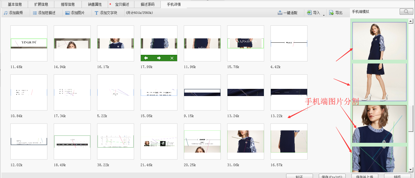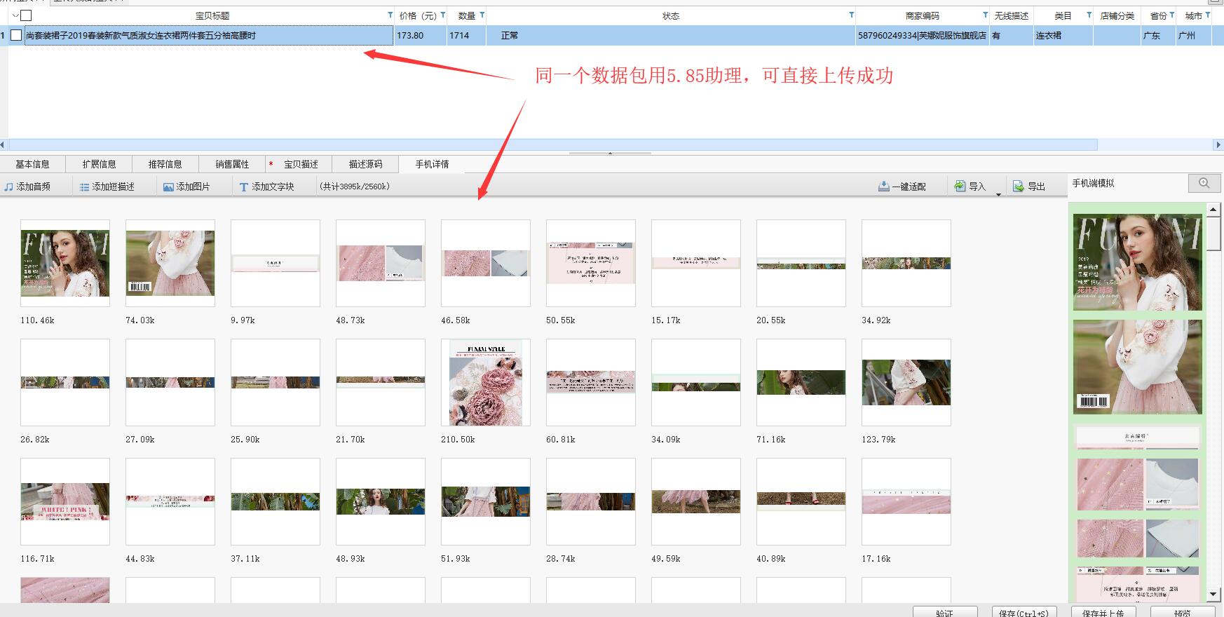 手机图片使用切图功能,记得换用5.85版本的淘宝助理,点击下载