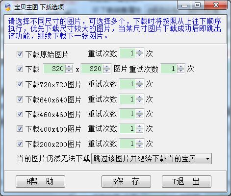 如果都下载失败,可以选择跳过该宝贝或者只跳过该图片、宝贝仍继续下载。