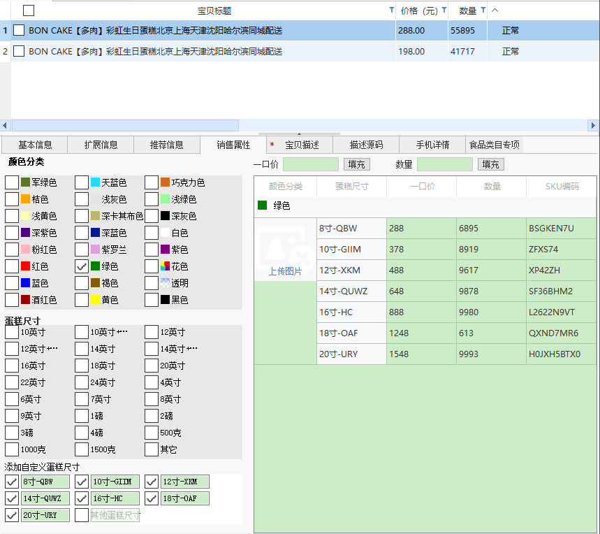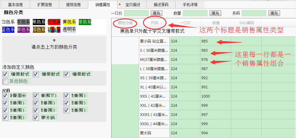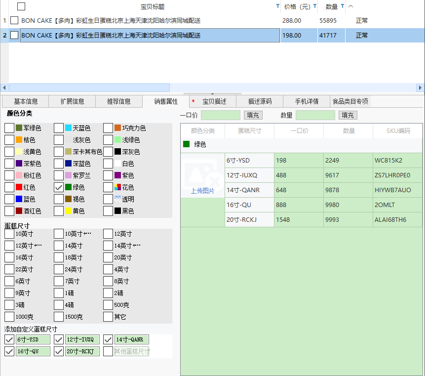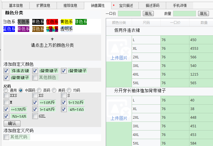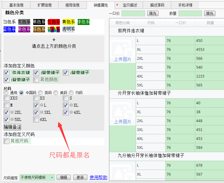 淘宝下载上传软件 销售属性选项