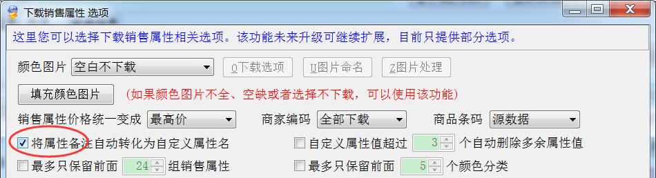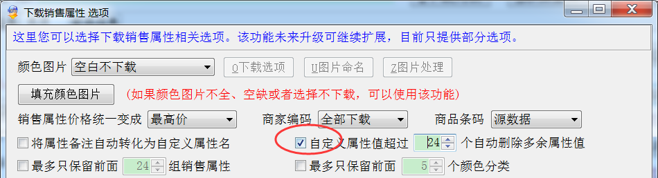 最多只保留前面N个颜色分类:有些客户有特殊要求,不想下载太多的颜色分类,可以限制颜色分类的数量,默认不选;