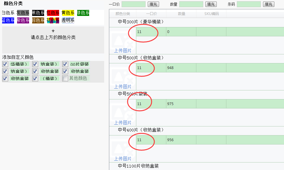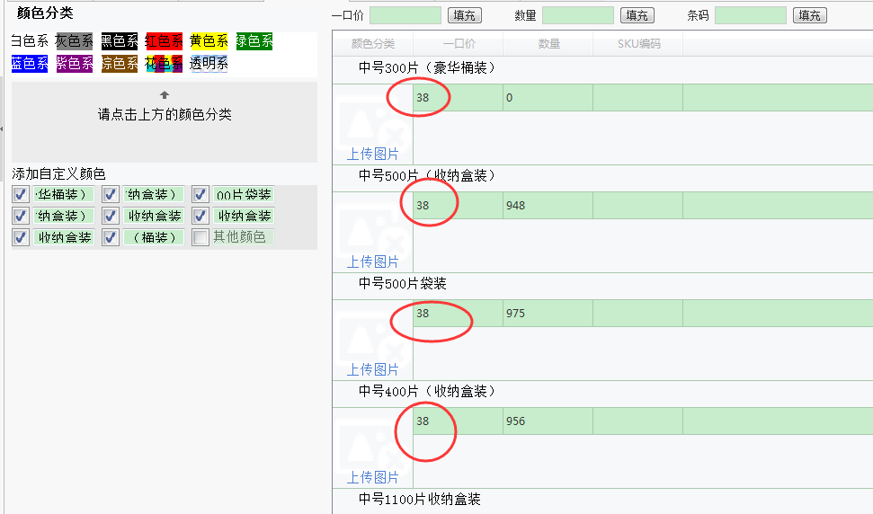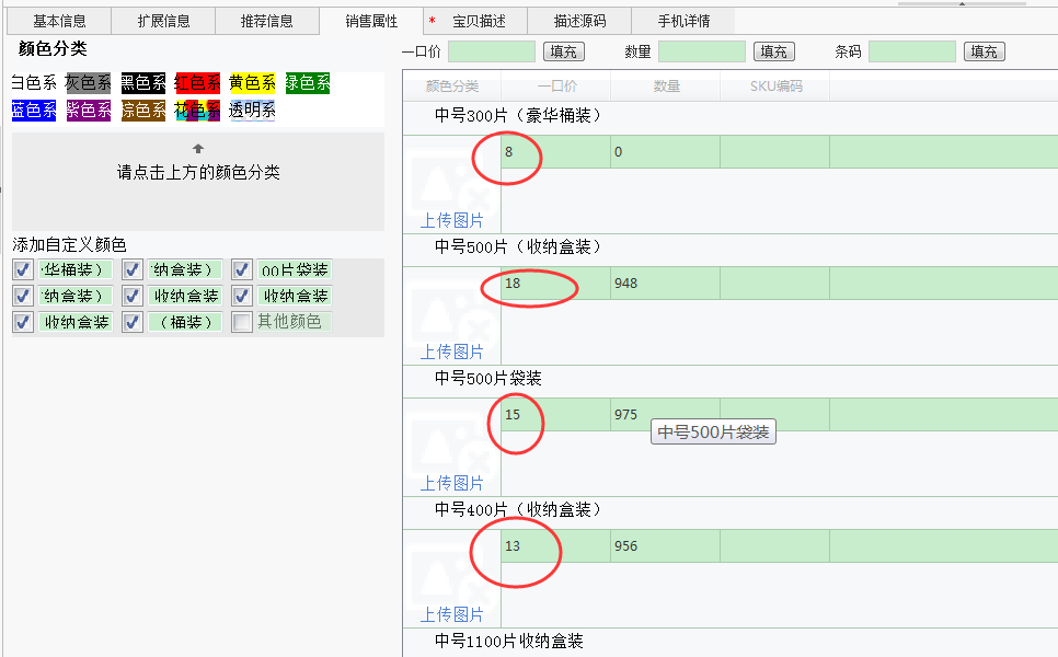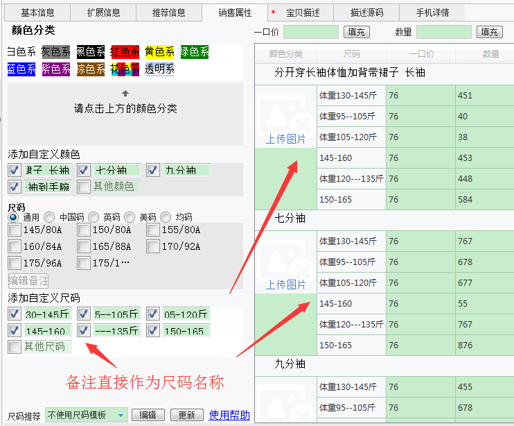 上面是淘宝数据包制作的销售属性选项,下面是上传软件的选项