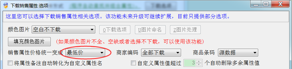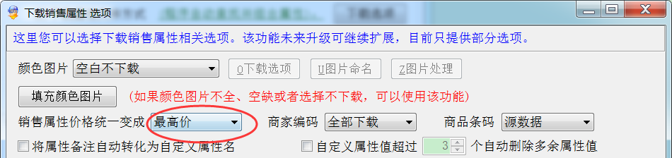这里您可以选择下载销售属性相关选项。该功能未来升级可继续扩展,目前只提供部分选项。