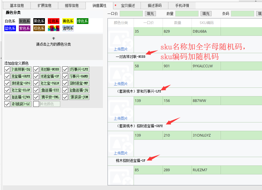 ★sku名称加全字母随机码,sku编码加随机码★