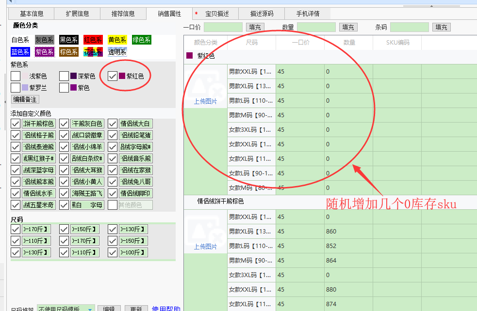 ▲随机添加几个0库存sku