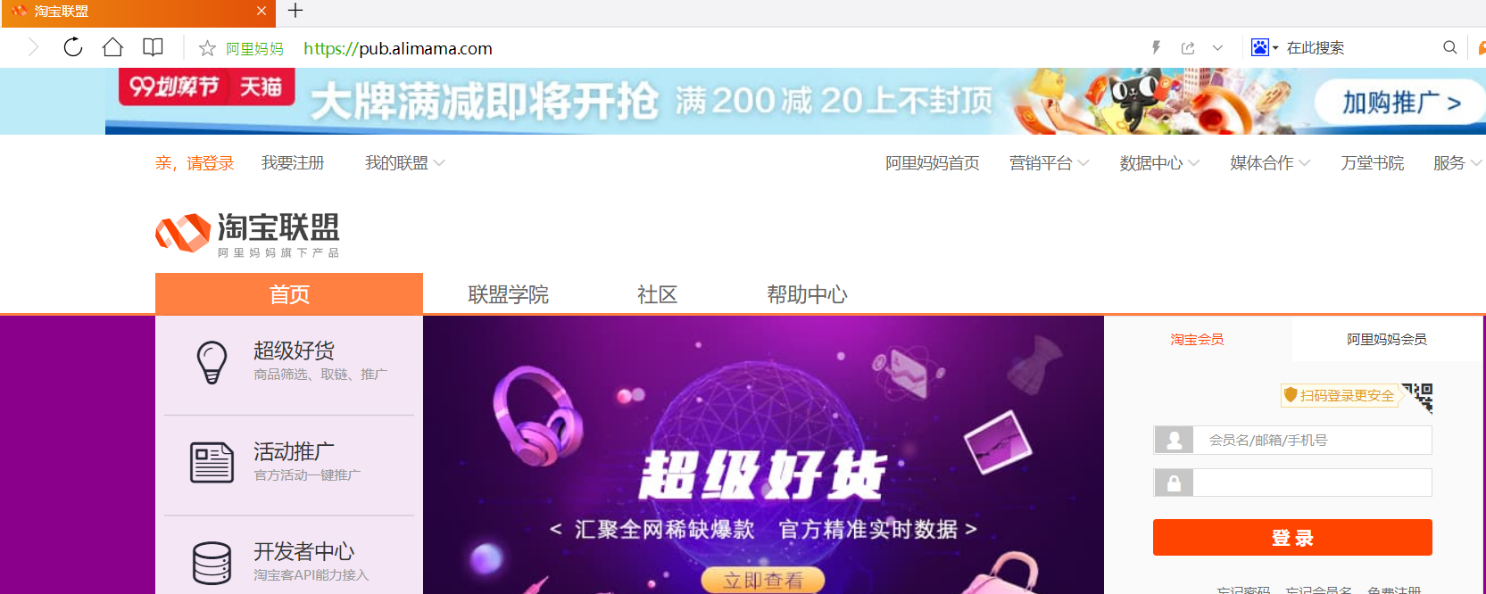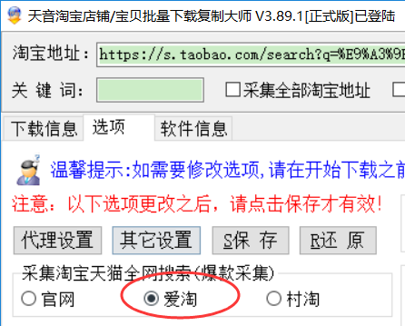 —>第一步:点击“爱淘宝搜索”,【如果网页跳转到阿里妈妈登陆页面,请用淘宝会员帐号登陆,登陆成功后再返回软件上点击“爱淘宝搜索”一次】,按F12打开“开发者工具”,点击Network;