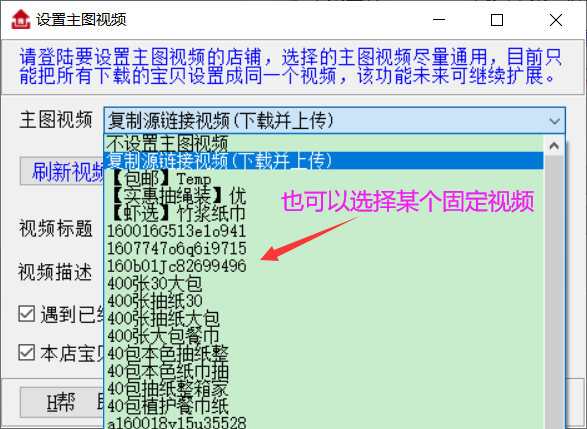使用该功能可以直接复制上家宝贝的主图视频,也可以选择店铺已有的视频。