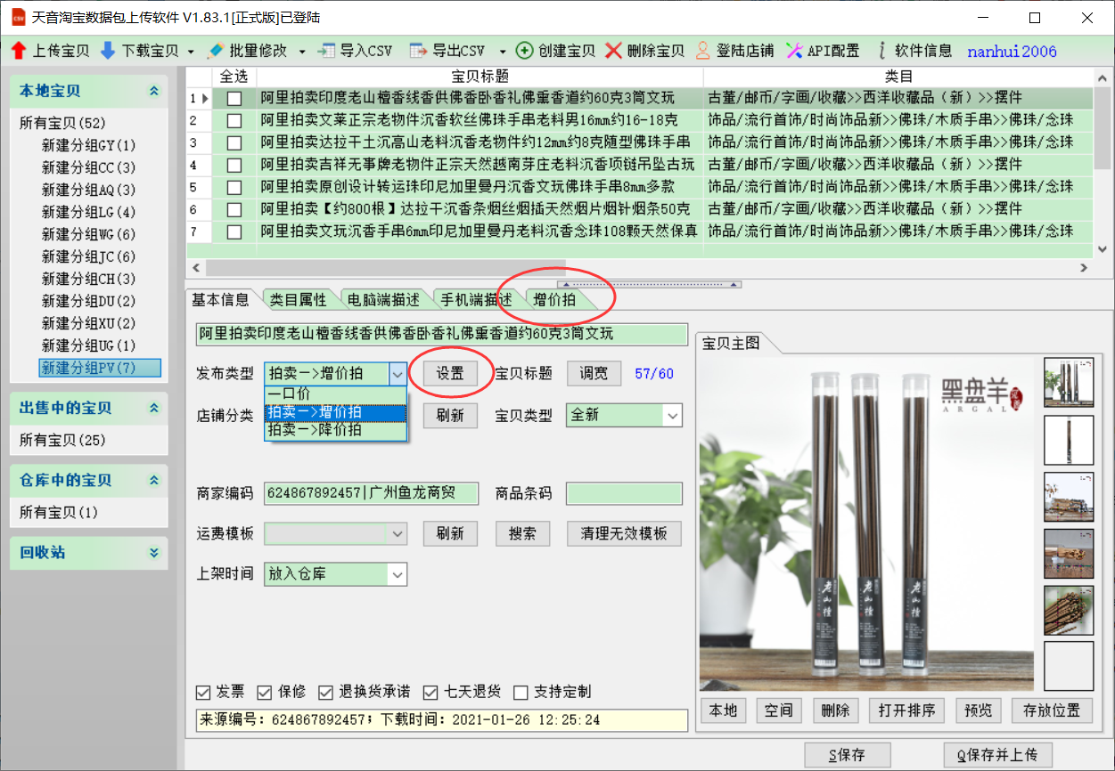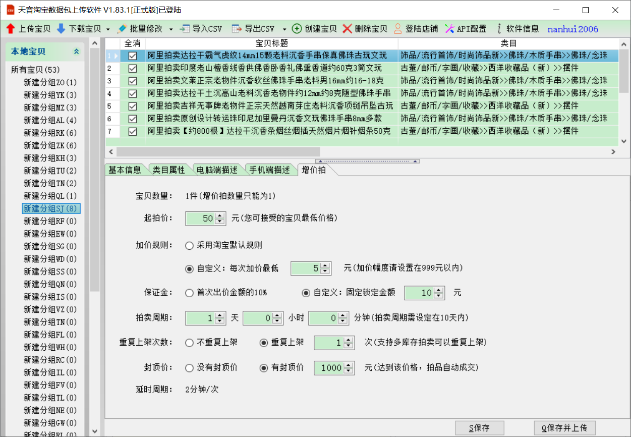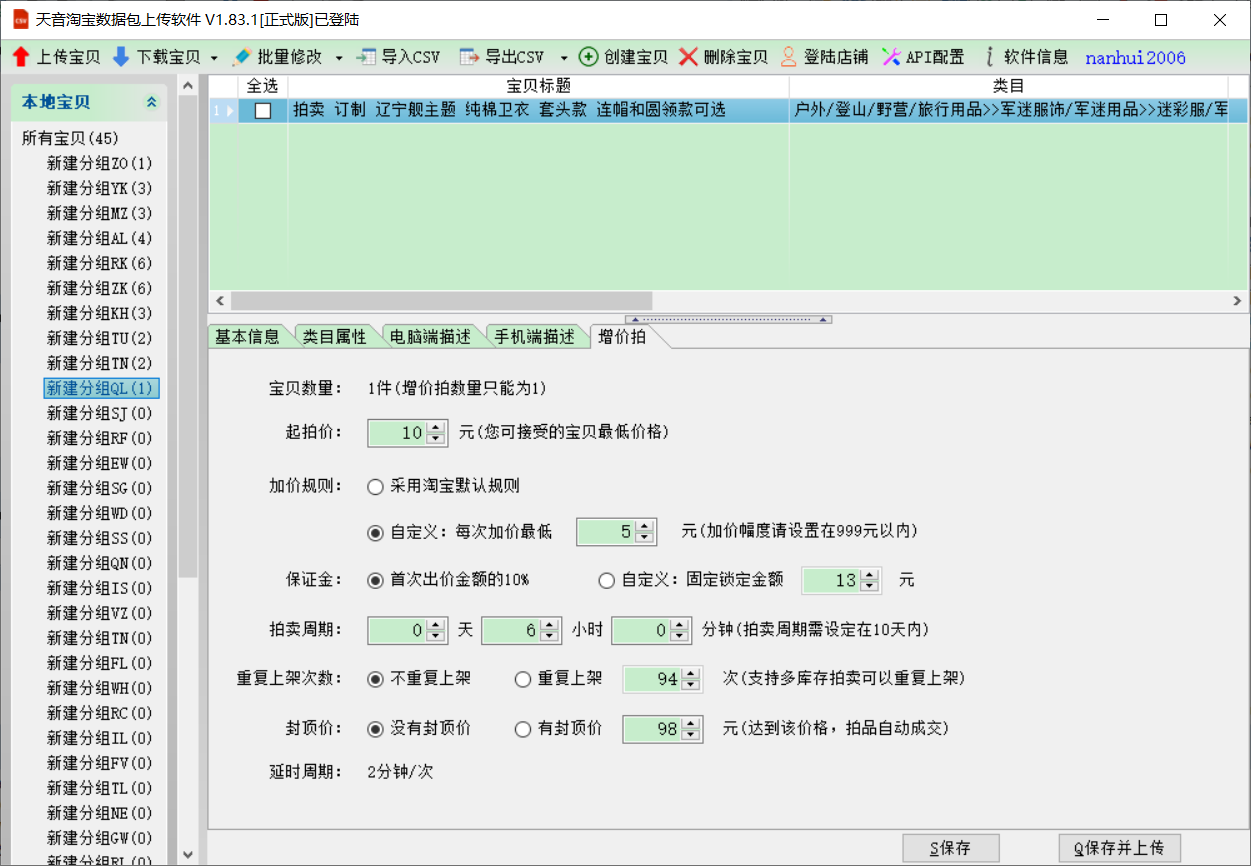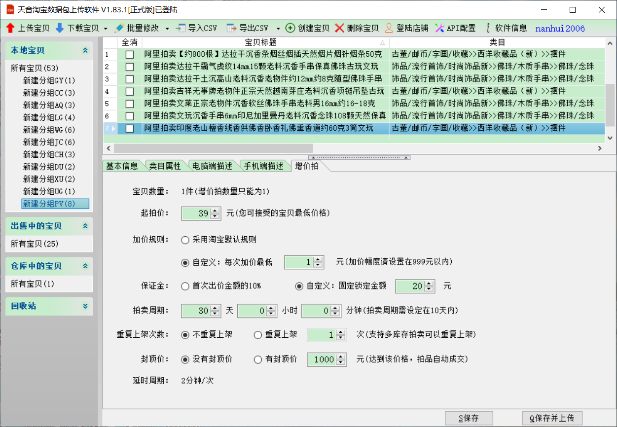 ★一键上传 裂变上传 上传拍卖宝贝★