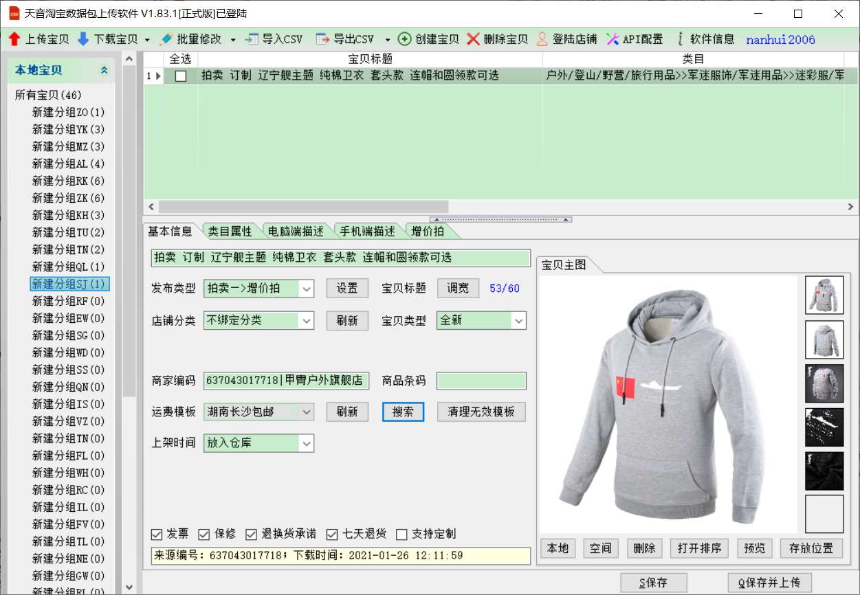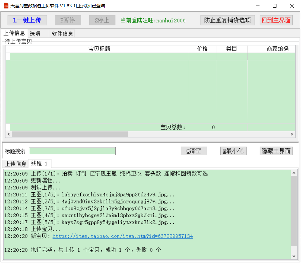 天音数据包上传 上传拍卖宝贝