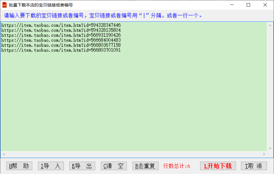 ▼可输入本店的宝贝编号或者链接进行下载,不能输入其它店铺的编号或者链接。