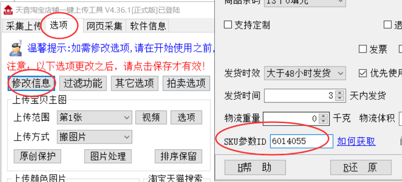天音上传软件 SKU参数ID获取帮助