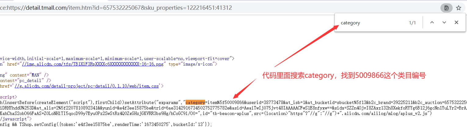 在宝贝代码页面上面搜索category,找到5009866这个类目编号—>