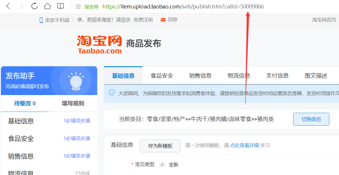 1、打开上家宝贝的商品发布页面