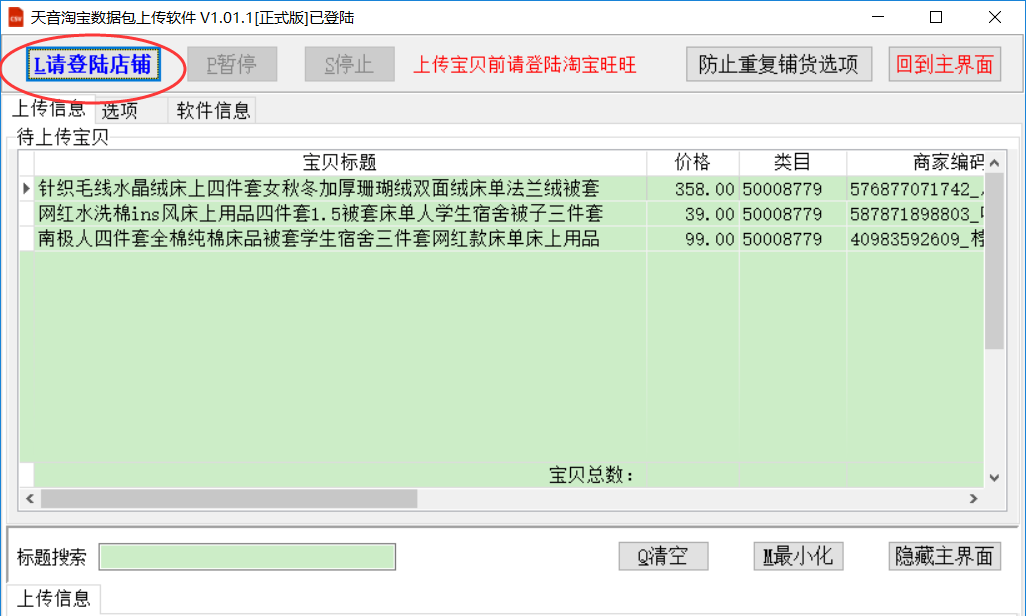—>打开软件,导入淘宝助理格式的数据包,这个数据包可以从淘宝数据包制作或者其它软件下载或者导出;